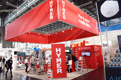 BU: Zur Weltleitmesse A+A Arbeitssicherheit und Arbeitsschutz in Düsseldorf präsentierte sich HYMER-Steigtechnik zum ersten Mal mit komplett überarbeiteten Markenauftritt. Mit dem neuen Messesstand wird HYMER auch auf der LogiMAT in Stuttgart vertreten sein und zeigt dort den Online-Konfigurator sowie ausgewählte Steigtechnik für Branchen wie Industrie, Logistik und Handwerk.