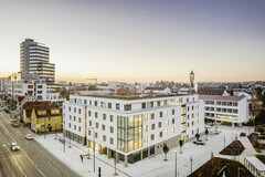 BU: Schlüsselfertiges Wohn- und Geschäftshaus am Stuttgarter Olga-Areal auf dem Gelände des ehemaligen Olgahospitals: Es entstand neuer Wohnraum, mit einem geschickt integrierten Vollsortimenter und kleineren Gewerbe- und Ladenflächen. (Foto:: Jürgen Pollack Fotografie)