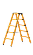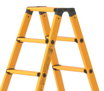 Teil der neuen Produktlinie sind zunächst zwei Stufen- und zwei Sprossenmodelle. Sämtliche Bauteile der vier Leitern bestehen aus Kunststoff bzw. Glasfaserkunststoff (GFK). Sie sind zu 100 Prozent ohne Metall gefertigt und bis 1.000 Volt zugelassen. Die neuen GFK-Leitern leiten keinen Strom und bieten Mitarbeitern in der Elektrotechnik auch bei Spannung einen sicheren Arbeitsplatz. Der Werkstoff GFK verfügt außerdem über ein ausgezeichnetes Korrosionsverhalten. Daher können die Steighilfen auch besonders gut in aggressiv feuchten Umgebungen und im Umgang mit chemischen Substanzen verwendet werden.
