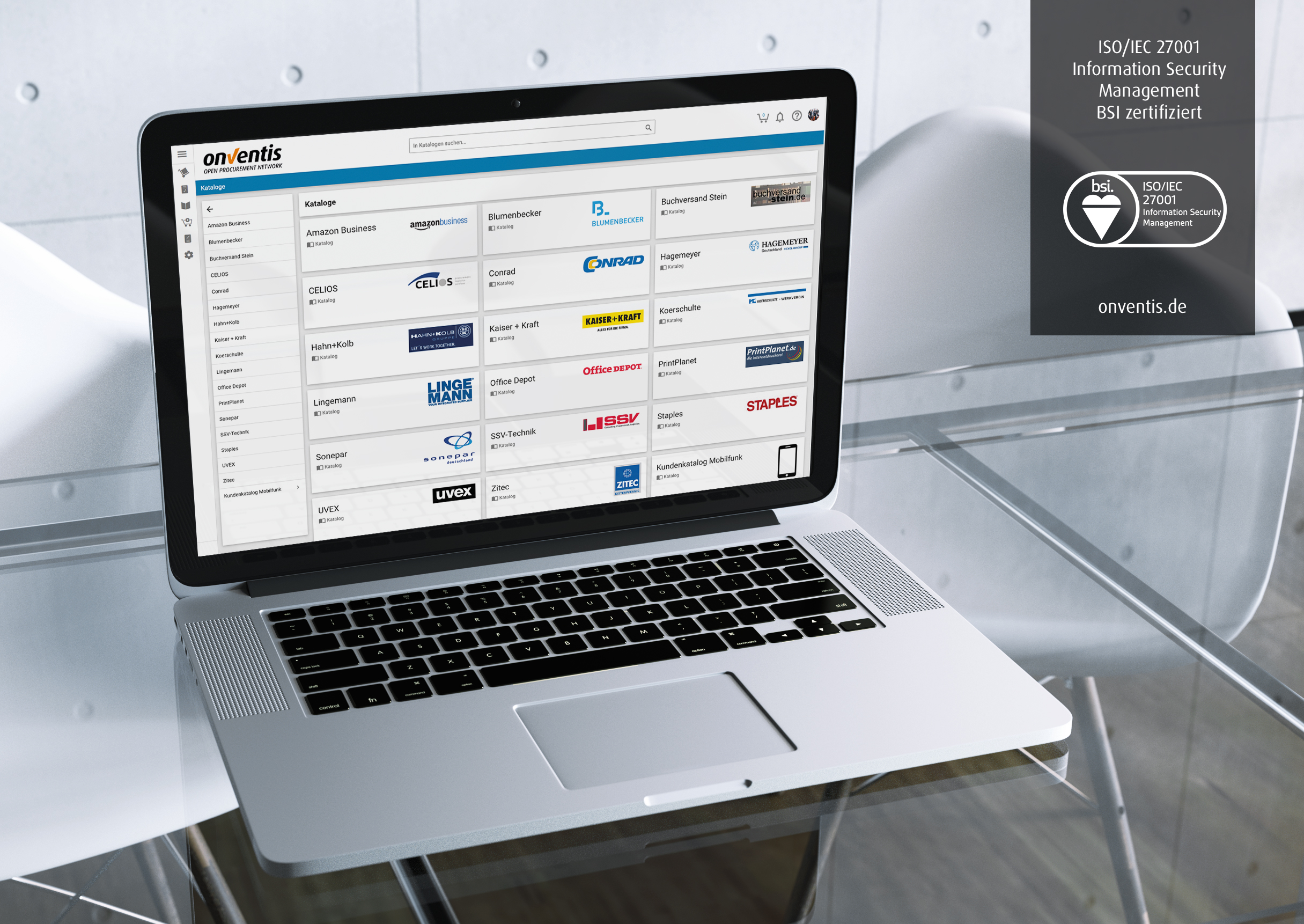 Konsistente Datenservices und IT-Sicherheit haben beim E-Procurement Spezialisten Onventis höchste Priorität. So setzt das Unternehmen seit der Gründung im Jahr 2000 konsequent auf ein deutsches Cloud-System mit Rechenzentren in Frankfurt am Main und Stuttgart. Mit der ISO/IEC 27001-Zertifizierung markiert die Onventis GmbH den nächsten Schritt hinsichtlich einer vollumfänglichen Erfüllung sicherheitsrelevanter Kundenanforderungen und geltender gesetzlicher Bestimmungen rund um die Informationssicherheit.