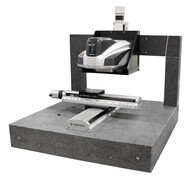 Integration von Keyence in Aerotech-Positioniersysteme für noch größere Verfahrwege: Die Experten von Aerotech haben hierfür auf einem stabilen Granitportal eine Z-Achse mit bis zu 300 mm Verstellweg montiert. Der Messkopf wird von einem Adapterwinkel getragen. Für die Bauteil-Justage ist ein Kreuztisch auf einer Granitbasis montiert.